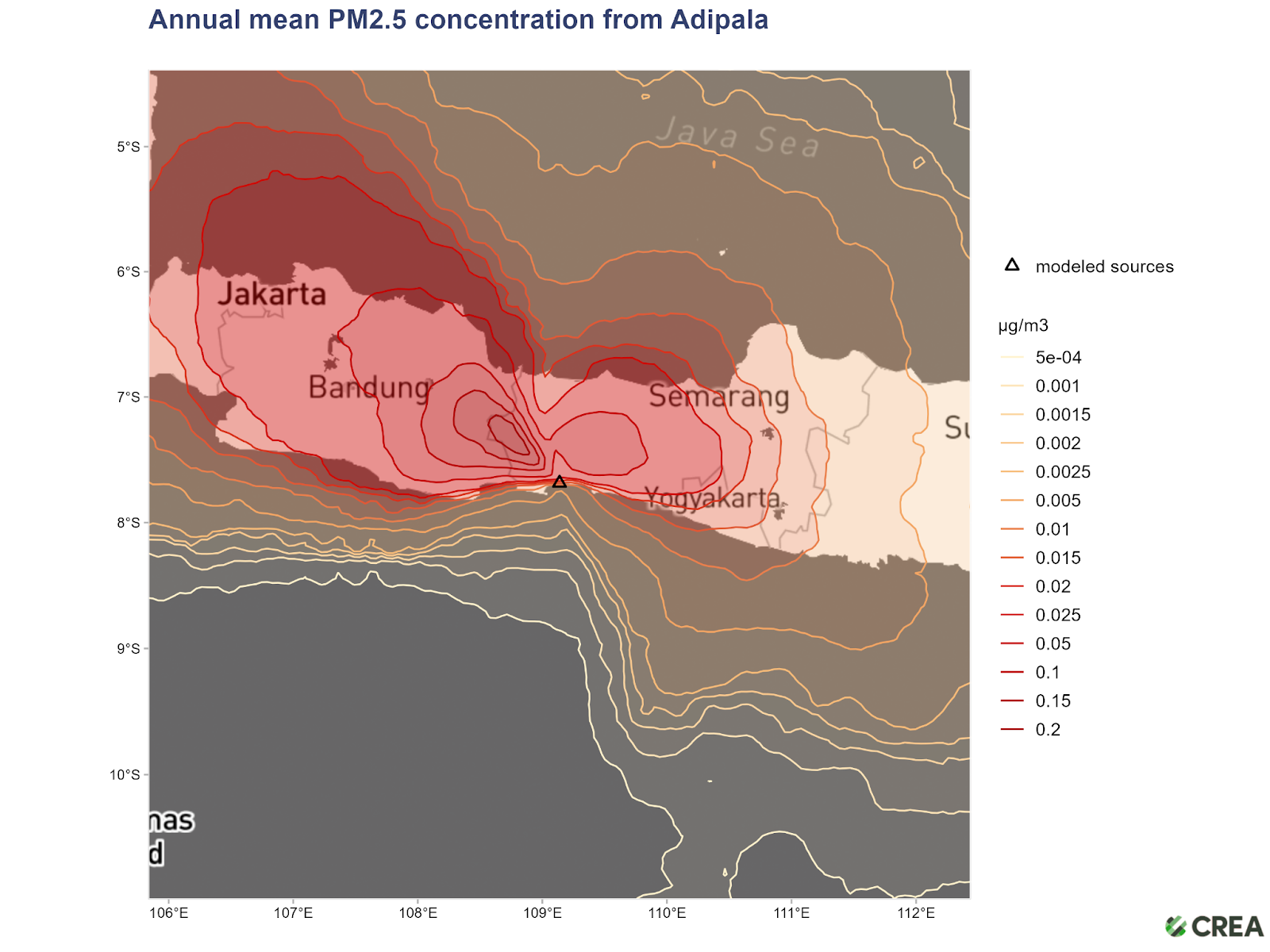 Gambar. Rata-rata tahunan penyebaran PM2.5 dari PLTU Adipala