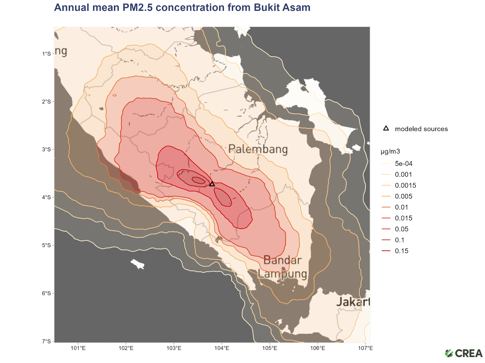 Gambar. Rata-rata tahunan penyebaran PM2.5 dari PLTU Bukit Asam