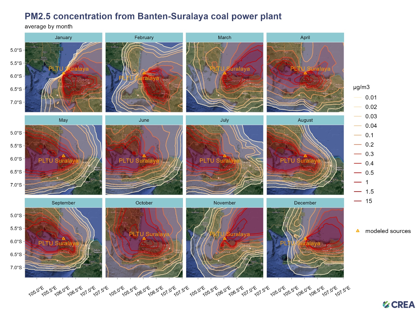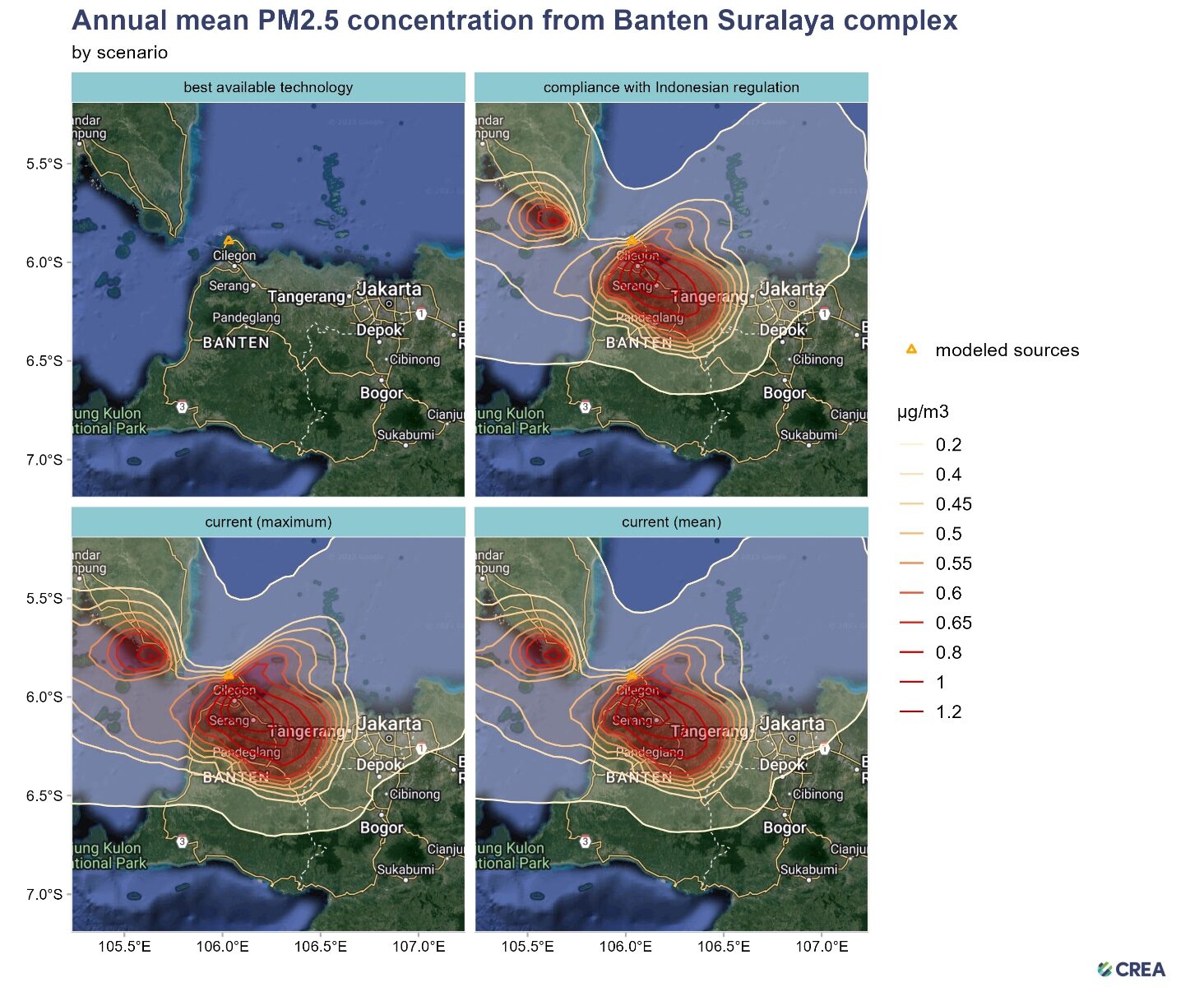 Gambar. Rata-rata tahunan penyebaran PM2.5 dari Komplek PLTU Suralaya