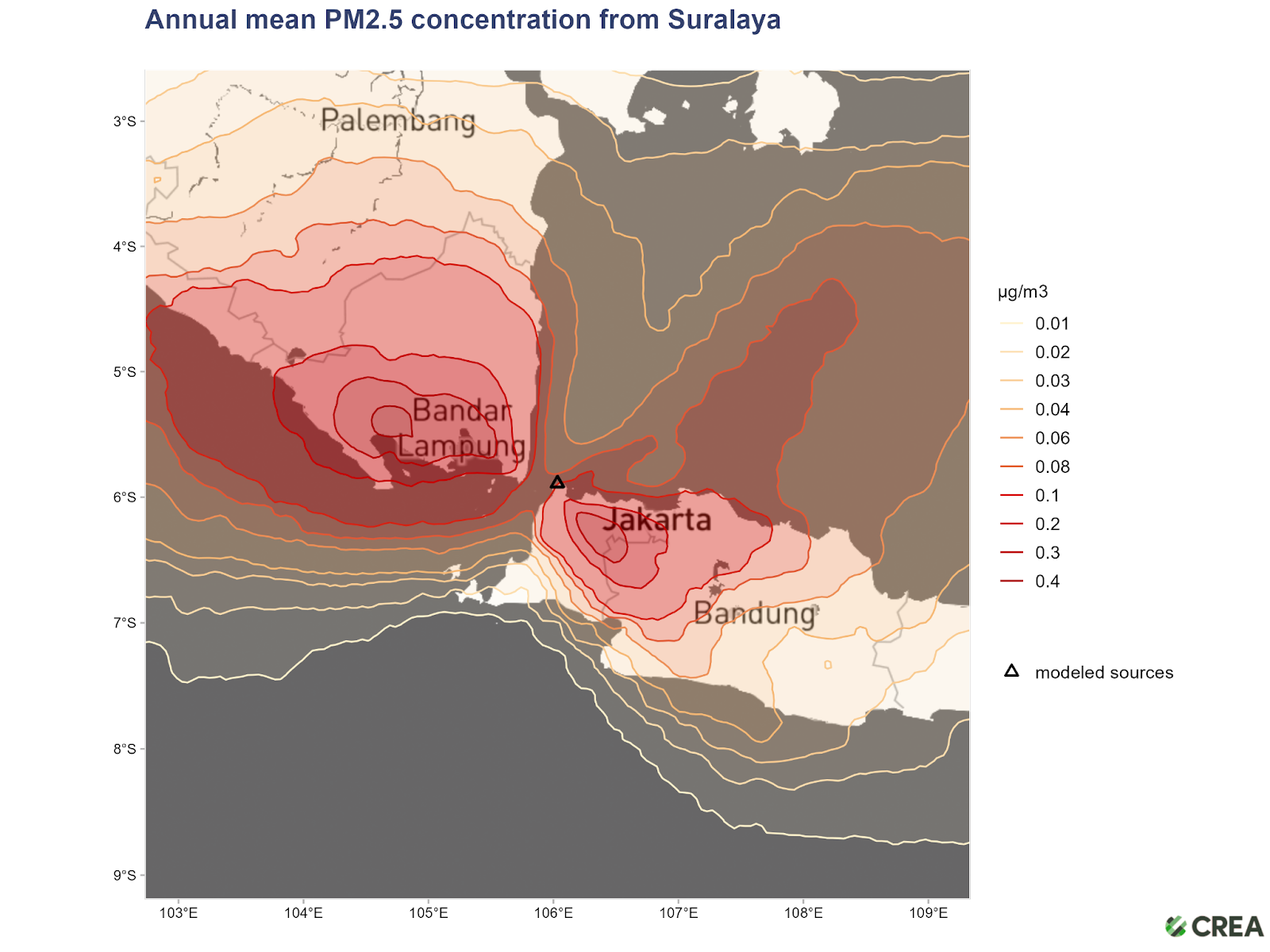 Gambar. Rata-rata tahunan penyebaran PM2.5 dari Komplek PLTU Suralaya